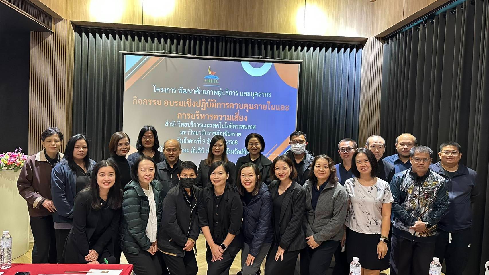 วันที่ 9 ธันวาคม 2568 สำนักวิทยบริการและเทคโนโลยีสารสนเทศ มหาวิทยาลัยราชภัฏเชียงราย เดินหน้ายกระดับประสิทธิภาพการทำงานของบุคลากร จัดอบรมเชิงปฏิบัติการ เรื่อง "การควบคุมภายในและการบริหารความเสี่ยง" หวังเสริมสร้างความรู้ความเข้าใจ และปลูกฝังความตระหนักรู้ให้แก่เจ้าหน้าที่ทุกคน เพื่อขับเคลื่อนสำนักวิทยบริการฯ ให้ก้าวหน้าอย่างมั่นคงและมีประสิทธิภาพสูงสุด