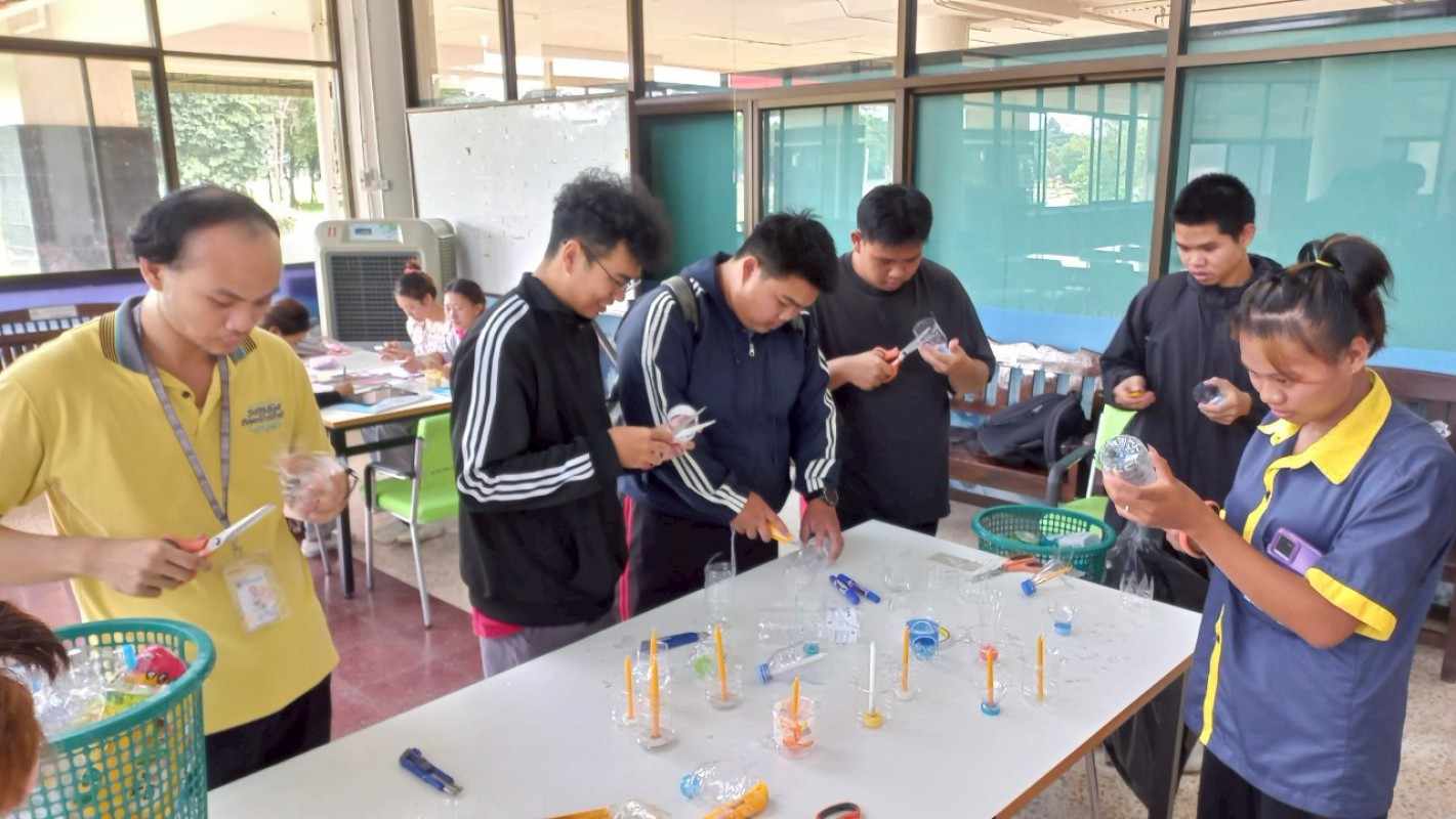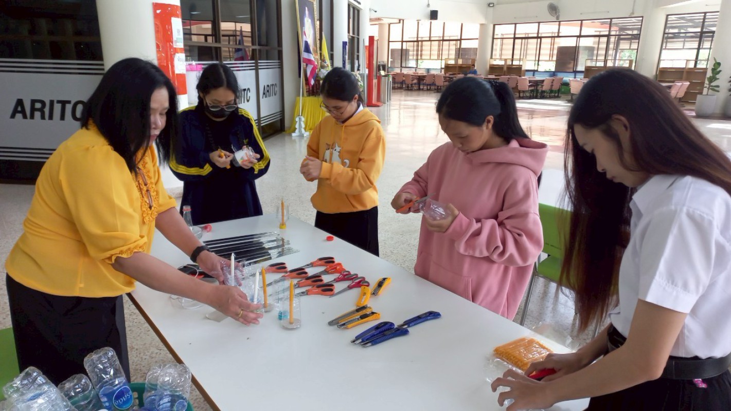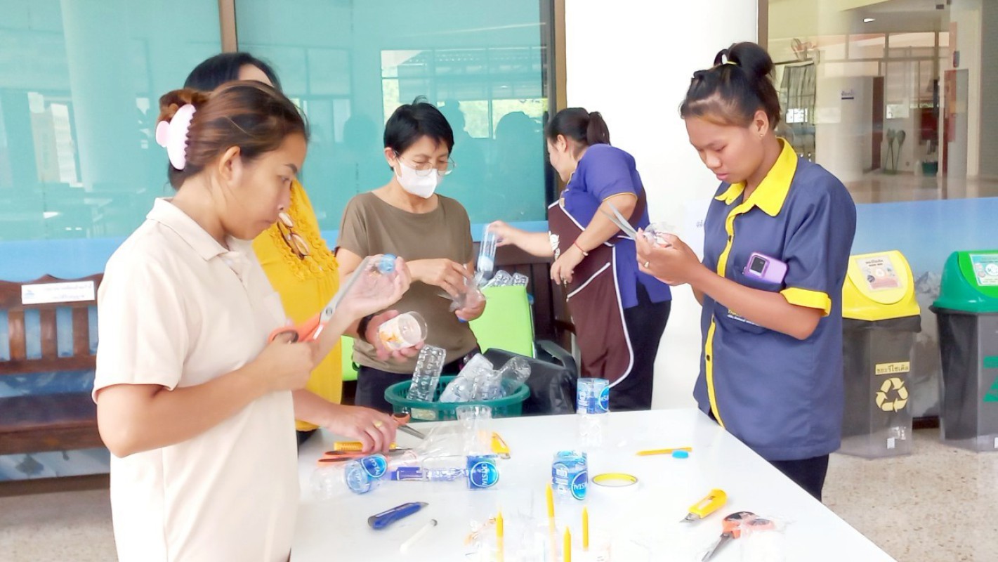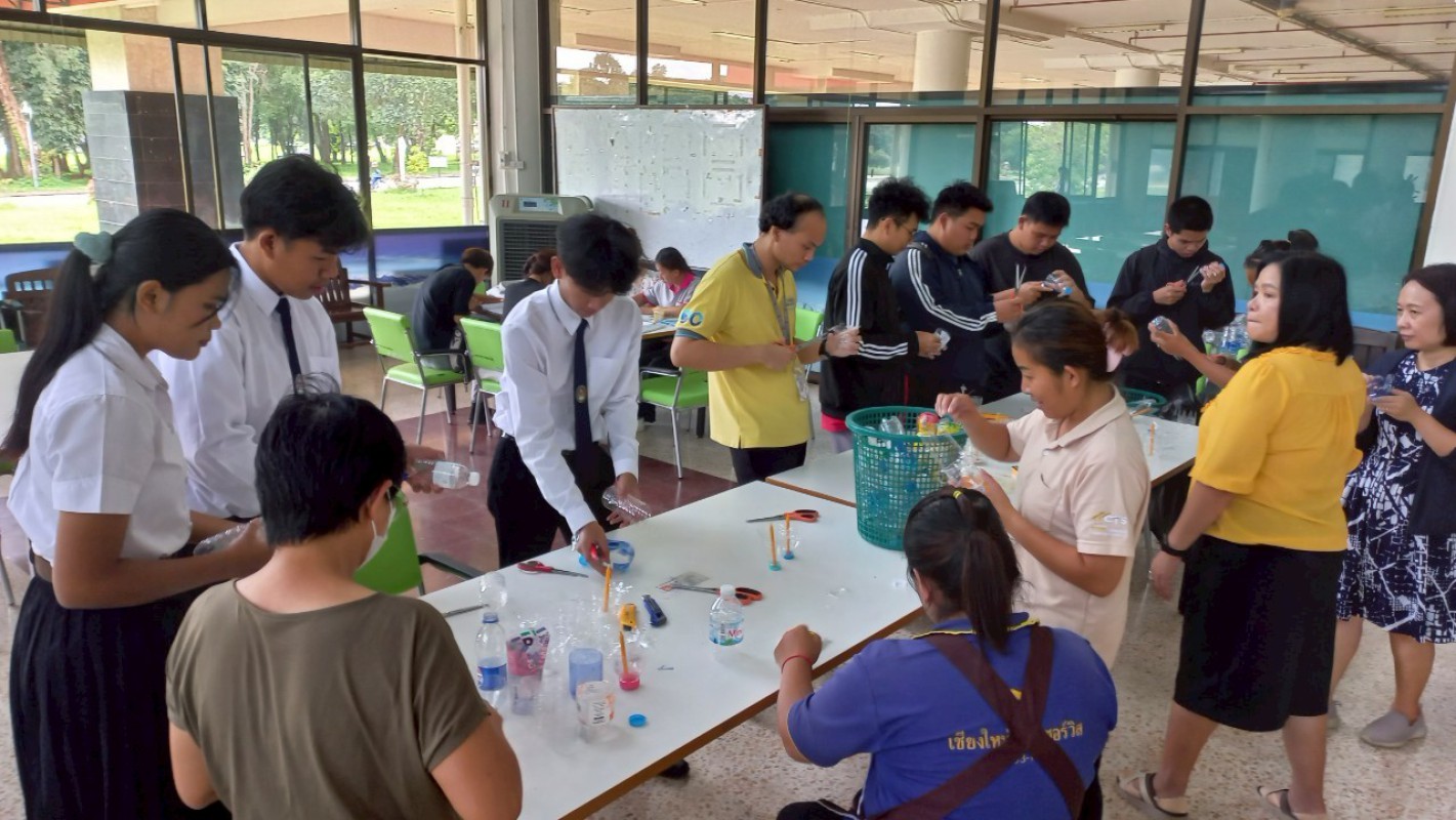 กิจกรรม "ประทีปแห่งศรัทธา แสงธรรมจากขวด" เพื่อลดขยะ เพิ่มบุญ สร้างสรรค์เชิงเทียนพลาสติก ----------- 7 ก.ค. 2568 สำนักวิทยบริการและเทคโนโลยีสารสนเทศ มหาวิทยาลัยราชภัฏเชียงราย ได้จัดกิจกรรมดีๆ ที่ชวนทุกคนมาร่วมกิจกรรม "ประทีปแห่งศรัทธา แสงธรรมจากขวด" บริเวณลานกิจกรรมชั้น 1 อาคารยุพราชวิทยมงคล ซึ่งกิจกรรมนี้ไม่ใช่แค่ลดขยะพลาสติกที่กองเต็มโลก แต่ยังได้บุญแบบเต็มๆ จากการสร้างสรรค์ "เชิงเทียนจากขวดพลาสติก" เพื่อนำไปเวียนเทียนในวันอาสาฬหบูชาเพื่อถวายเป็นพุทธบูชาอีกด้วยค่ะ! ไอเดียนี้เกิดขึ้นจากคณะทำงาน หมวดที่ 2 ด้านการสื่อสาร สร้างจิตสำนึก และส่งเสริมการเรียนรู้ ในคณะกรรมการบริหารจัดการระบบมาตรฐานด้านสิ่งแวดล้อม สำนักวิทยบริการและเทคโนโลยีสารสนเทศ ในการดำเนินงงานด้านห้องสมุดสีเขียว (Green Library) และ สำนักงานสีเขียว (Green Office) ตั้งใจที่จะรวมพลังระหว่าง "การรักษ์โลก" กับ "การทำบุญ" ที่เป็นส่วนหนึ่งของวิถีชีวิตไทยมาอย่างยาวนาน การนำขวดพลาสติกใช้แล้วมาเปลี่ยนเป็นเชิงเทียนเพื่อนำไปเวียนเทียนในวันอาสฬหบูชาที่จะถึงนี้ เป็นการแสดงออกถึงความรับผิดชอบต่อสิ่งแวดล้อม และยังเป็นการสร้างกุศลด้วยการประดิษฐ์สิ่งที่สวยงามและมีคุณค่าทางจิตใจ กิจกรรมในวันนี้ มีน้อง ๆ นักศึกษา และนักเรียนจากโรงเรียนสาธิต มร.ชร. ร่วมถึงบุคลากรของสำนักวิทยบริการฯ เข้าร่วมกิจกรรมในครั้งนี้ โอกาสต่อไป คณะทำงานหมวดไหน จะทำกิจกรรมเพื่อเป็นการรณรงค์ด้านห้องสมุดสีเขียว (Green Library) และ สำนักงานสีเขียว (Green Office) อีก สามารถติดตามผ่านทางเพจสำนักวิทยบริการฯ ของเราได้เลยน๊าทุ๊กคนนนนนนน
