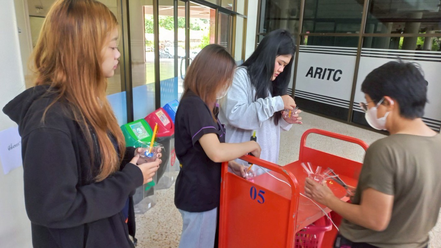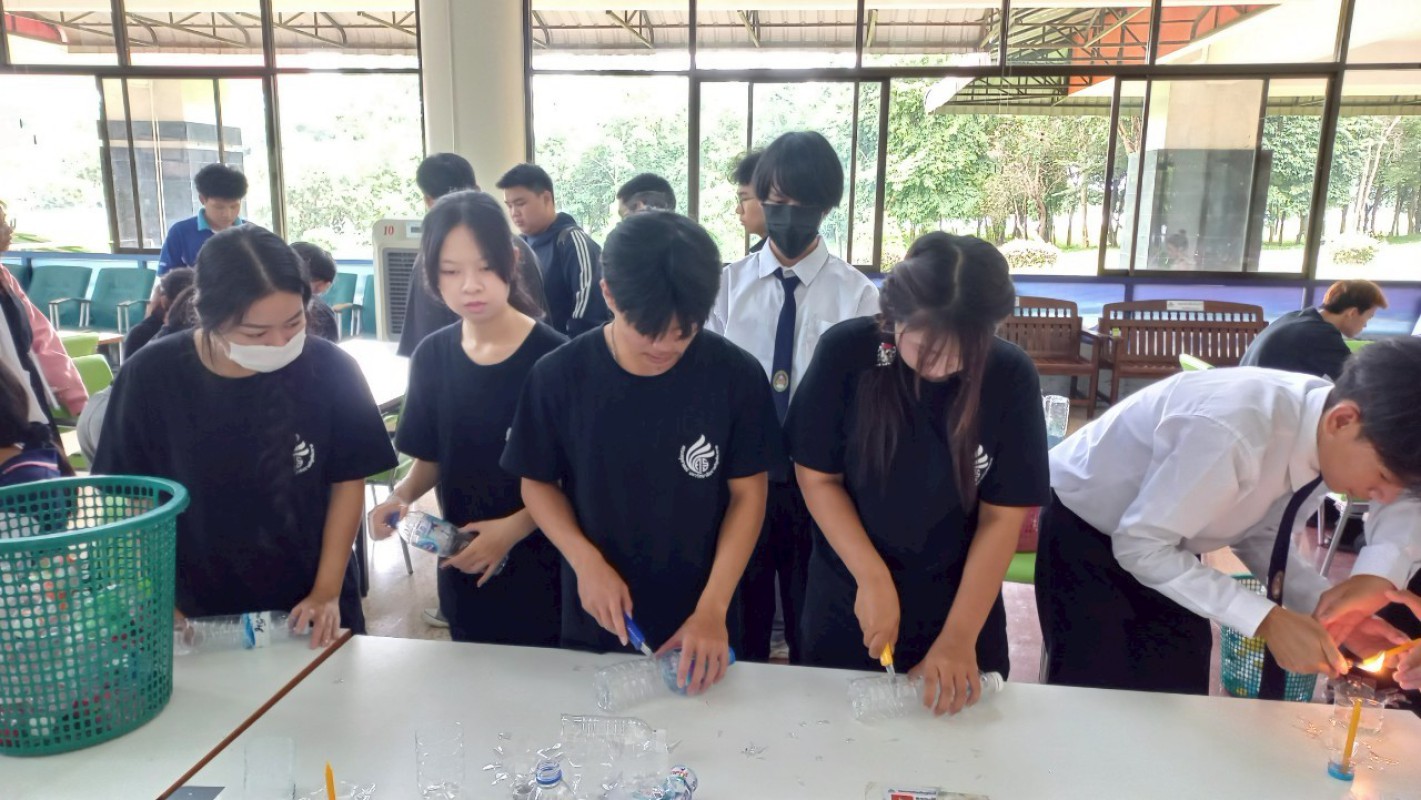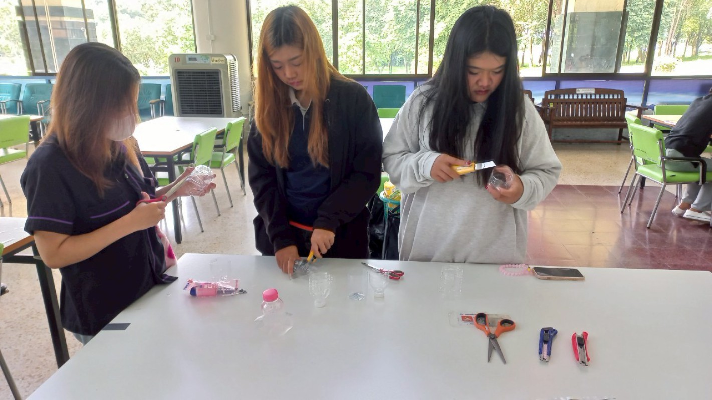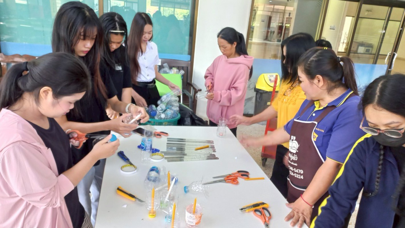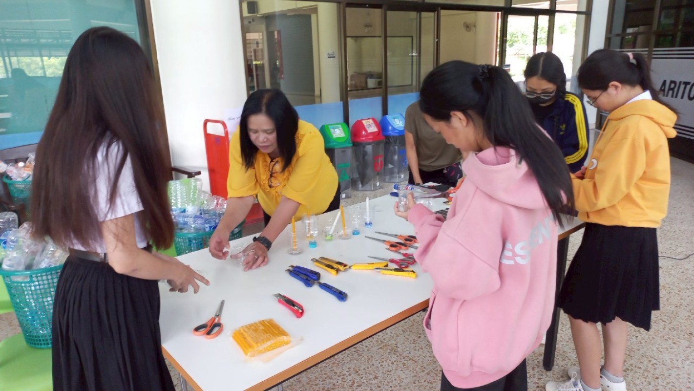 กิจกรรม "ประทีปแห่งศรัทธา แสงธรรมจากขวด" เพื่อลดขยะ เพิ่มบุญ สร้างสรรค์เชิงเทียนพลาสติก ----------- 7 ก.ค. 2568 สำนักวิทยบริการและเทคโนโลยีสารสนเทศ มหาวิทยาลัยราชภัฏเชียงราย ได้จัดกิจกรรมดีๆ ที่ชวนทุกคนมาร่วมกิจกรรม "ประทีปแห่งศรัทธา แสงธรรมจากขวด" บริเวณลานกิจกรรมชั้น 1 อาคารยุพราชวิทยมงคล ซึ่งกิจกรรมนี้ไม่ใช่แค่ลดขยะพลาสติกที่กองเต็มโลก แต่ยังได้บุญแบบเต็มๆ จากการสร้างสรรค์ "เชิงเทียนจากขวดพลาสติก" เพื่อนำไปเวียนเทียนในวันอาสาฬหบูชาเพื่อถวายเป็นพุทธบูชาอีกด้วยค่ะ! ไอเดียนี้เกิดขึ้นจากคณะทำงาน หมวดที่ 2 ด้านการสื่อสาร สร้างจิตสำนึก และส่งเสริมการเรียนรู้ ในคณะกรรมการบริหารจัดการระบบมาตรฐานด้านสิ่งแวดล้อม สำนักวิทยบริการและเทคโนโลยีสารสนเทศ ในการดำเนินงงานด้านห้องสมุดสีเขียว (Green Library) และ สำนักงานสีเขียว (Green Office) ตั้งใจที่จะรวมพลังระหว่าง "การรักษ์โลก" กับ "การทำบุญ" ที่เป็นส่วนหนึ่งของวิถีชีวิตไทยมาอย่างยาวนาน การนำขวดพลาสติกใช้แล้วมาเปลี่ยนเป็นเชิงเทียนเพื่อนำไปเวียนเทียนในวันอาสฬหบูชาที่จะถึงนี้ เป็นการแสดงออกถึงความรับผิดชอบต่อสิ่งแวดล้อม และยังเป็นการสร้างกุศลด้วยการประดิษฐ์สิ่งที่สวยงามและมีคุณค่าทางจิตใจ กิจกรรมในวันนี้ มีน้อง ๆ นักศึกษา และนักเรียนจากโรงเรียนสาธิต มร.ชร. ร่วมถึงบุคลากรของสำนักวิทยบริการฯ เข้าร่วมกิจกรรมในครั้งนี้ โอกาสต่อไป คณะทำงานหมวดไหน จะทำกิจกรรมเพื่อเป็นการรณรงค์ด้านห้องสมุดสีเขียว (Green Library) และ สำนักงานสีเขียว (Green Office) อีก สามารถติดตามผ่านทางเพจสำนักวิทยบริการฯ ของเราได้เลยน๊าทุ๊กคนนนนนนน