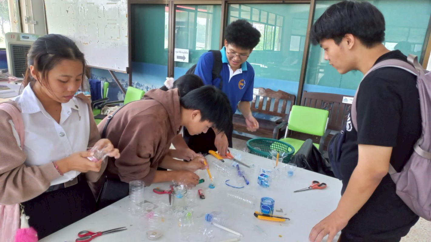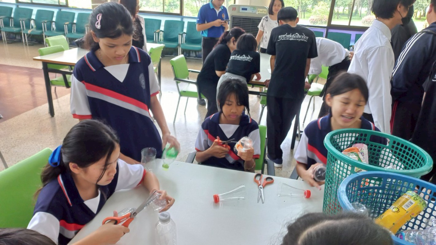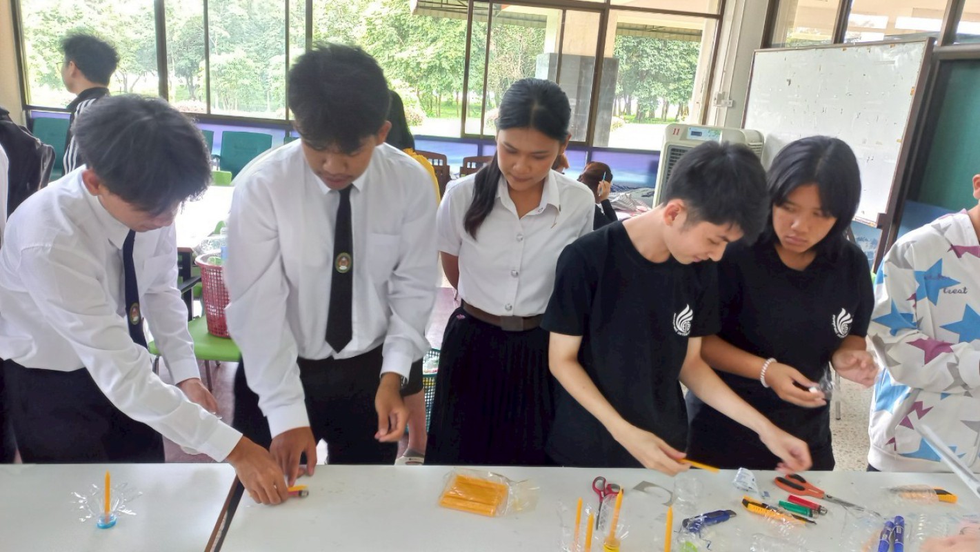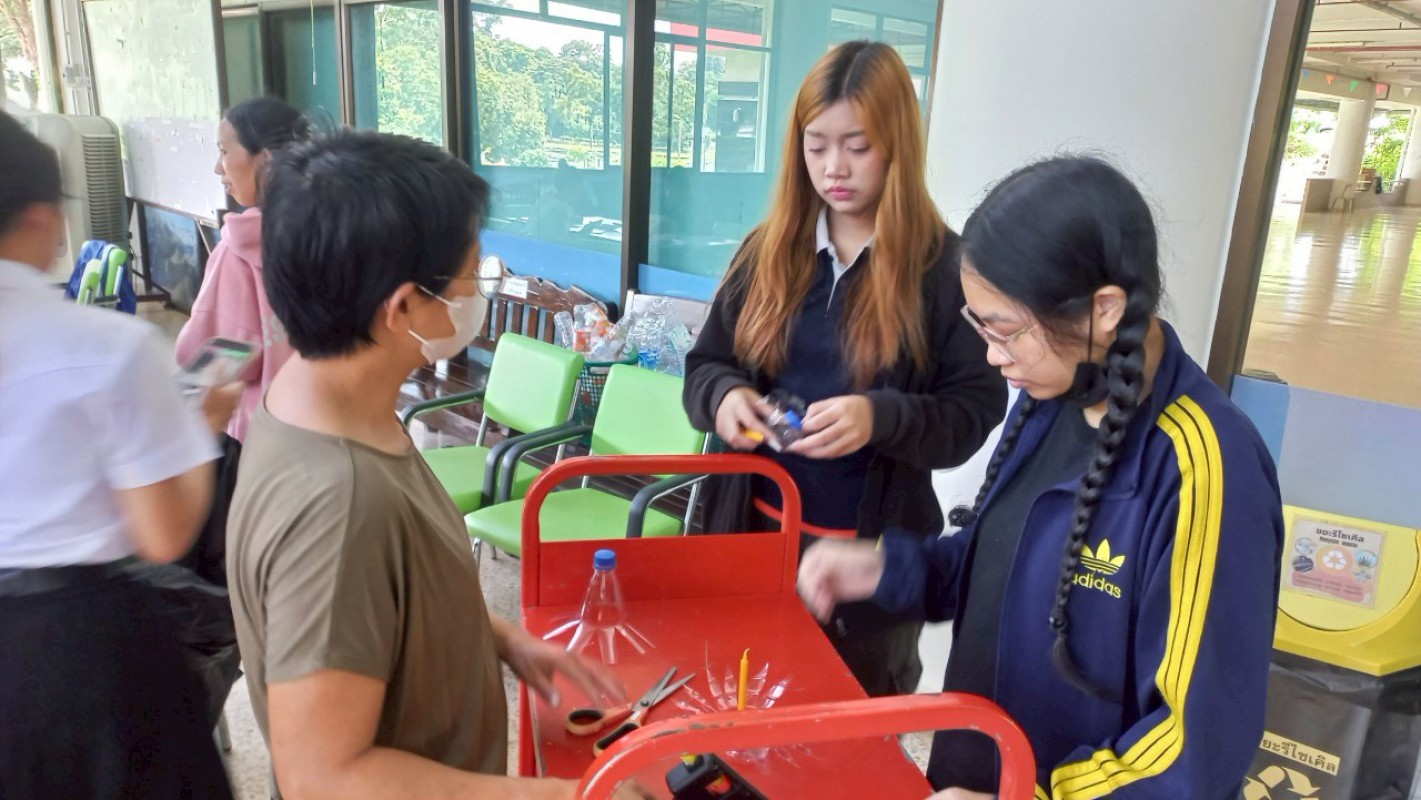 กิจกรรม "ประทีปแห่งศรัทธา แสงธรรมจากขวด" เพื่อลดขยะ เพิ่มบุญ สร้างสรรค์เชิงเทียนพลาสติก ----------- 7 ก.ค. 2568 สำนักวิทยบริการและเทคโนโลยีสารสนเทศ มหาวิทยาลัยราชภัฏเชียงราย ได้จัดกิจกรรมดีๆ ที่ชวนทุกคนมาร่วมกิจกรรม "ประทีปแห่งศรัทธา แสงธรรมจากขวด" บริเวณลานกิจกรรมชั้น 1 อาคารยุพราชวิทยมงคล ซึ่งกิจกรรมนี้ไม่ใช่แค่ลดขยะพลาสติกที่กองเต็มโลก แต่ยังได้บุญแบบเต็มๆ จากการสร้างสรรค์ "เชิงเทียนจากขวดพลาสติก" เพื่อนำไปเวียนเทียนในวันอาสาฬหบูชาเพื่อถวายเป็นพุทธบูชาอีกด้วยค่ะ! ไอเดียนี้เกิดขึ้นจากคณะทำงาน หมวดที่ 2 ด้านการสื่อสาร สร้างจิตสำนึก และส่งเสริมการเรียนรู้ ในคณะกรรมการบริหารจัดการระบบมาตรฐานด้านสิ่งแวดล้อม สำนักวิทยบริการและเทคโนโลยีสารสนเทศ ในการดำเนินงงานด้านห้องสมุดสีเขียว (Green Library) และ สำนักงานสีเขียว (Green Office) ตั้งใจที่จะรวมพลังระหว่าง "การรักษ์โลก" กับ "การทำบุญ" ที่เป็นส่วนหนึ่งของวิถีชีวิตไทยมาอย่างยาวนาน การนำขวดพลาสติกใช้แล้วมาเปลี่ยนเป็นเชิงเทียนเพื่อนำไปเวียนเทียนในวันอาสฬหบูชาที่จะถึงนี้ เป็นการแสดงออกถึงความรับผิดชอบต่อสิ่งแวดล้อม และยังเป็นการสร้างกุศลด้วยการประดิษฐ์สิ่งที่สวยงามและมีคุณค่าทางจิตใจ กิจกรรมในวันนี้ มีน้อง ๆ นักศึกษา และนักเรียนจากโรงเรียนสาธิต มร.ชร. ร่วมถึงบุคลากรของสำนักวิทยบริการฯ เข้าร่วมกิจกรรมในครั้งนี้ โอกาสต่อไป คณะทำงานหมวดไหน จะทำกิจกรรมเพื่อเป็นการรณรงค์ด้านห้องสมุดสีเขียว (Green Library) และ สำนักงานสีเขียว (Green Office) อีก สามารถติดตามผ่านทางเพจสำนักวิทยบริการฯ ของเราได้เลยน๊าทุ๊กคนนนนนนน